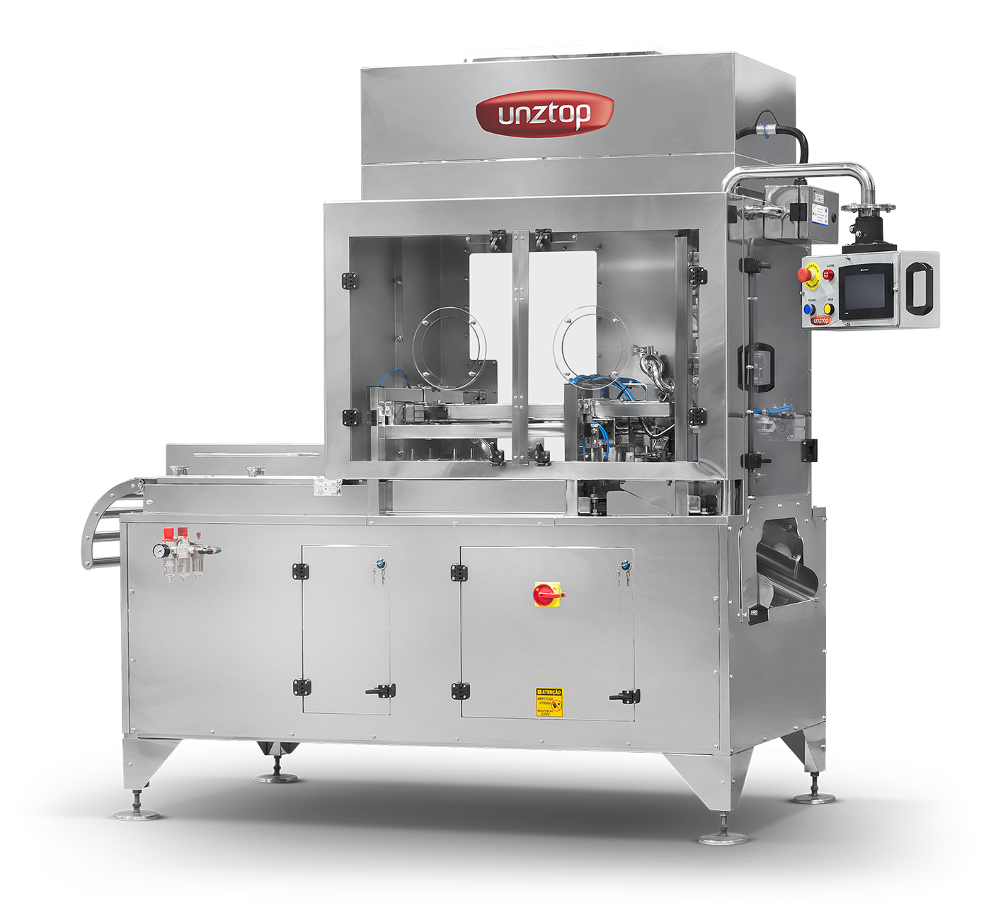 Equipamento dotado de sistema de confirmação, para garantir o início do enchimento somente após a etapa de “decapitação” do batoque da embalagem.